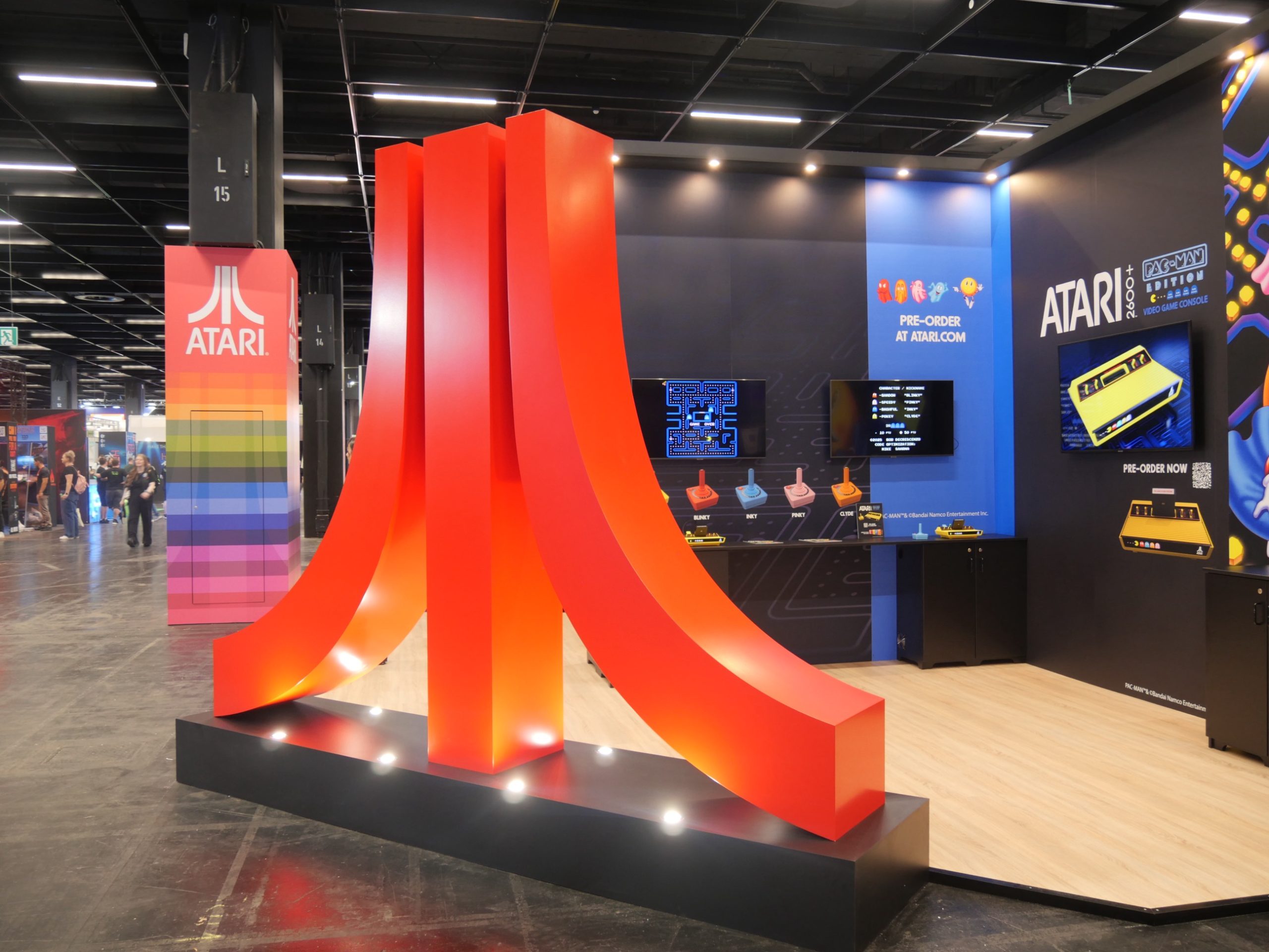 Atari’s public booth was divided into an 18+ area for Mortal Kombat Legacy and a free area for indie games (including Bubsy 4D) and the 2600+ in the Pac-Man edition.